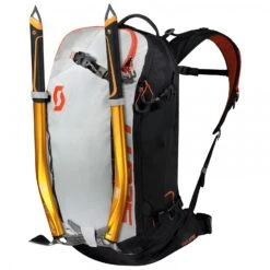 Le Pack Pack Patrol E1 30 Kit de Scott est un sac Ă dos airbag conçu principalement pour les fans de ski de randonnĂ©e et les spĂ©cialistes du freeride. Le sac Ă dos est Ă©quipĂ© avec le systĂšme airbag Alpride E1. Ce systĂšme Ă©lectronique se caractĂ©rise par son poids relativement faible et surtout par le fait que les tempĂ©ratures froides n’influencent pas les performances et la charge du condensateur. La poignĂ©e de dĂ©clenchement du systĂšme est mĂ©canique et en trois secondes, l’airbag est gonflĂ©. Le systĂšme se charge via USB tandis que deux piles AA veillent Ă ce que le systĂšme reste chargĂ© quand on ne s’en sert pas. Ainsi, il peut tenir plusieurs semaines. Les personnes qui ne veulent pas de piles doivent songer Ă entiĂšrement charger le systĂšme le soir avant la prochaine sortie.